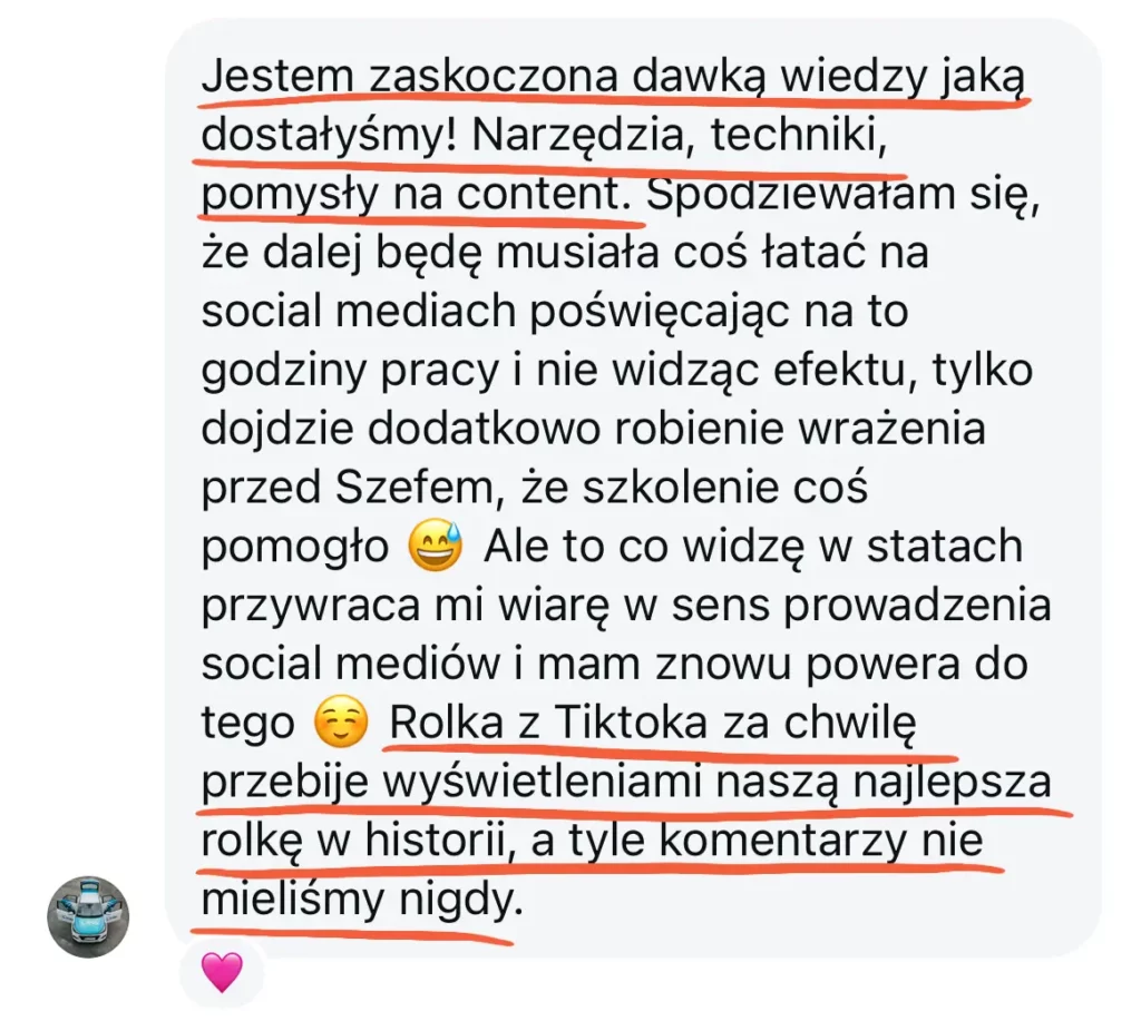 - pracujemy nad spójną strategią contentową i komunikacją w social mediach